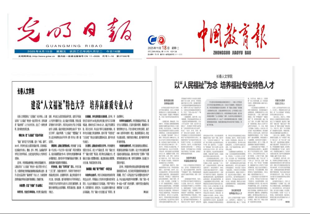 8.大学文化建设纵深推进。学校着力构建具有人文福祉特色的大学文化体系。原创舞蹈作品《扎根》获第十五届全国舞蹈展演优秀节目。在教育部中华优秀传统文化传承基地专题会议上做专题发言。成功承办省教育厅中华优秀传统文化进校园进课堂活动。新建成的校史馆全面梳理展示了学校37年办学历史与福祉特色建设成效。成立12个福祉类社团,深入开展养老护理、健康咨询、法律援助等志愿服务,累计服务地方群众万余人次。精心打造“福祉讲堂”“福祉文苑”“福祉文化节”和“福祉杯”系列福祉文化品牌活动,涵养师生福祉理念和福祉情怀。全省首个“共建福祉社区”在长春挂牌,创新构建了“学校+企业+社区”协同育人新范式。