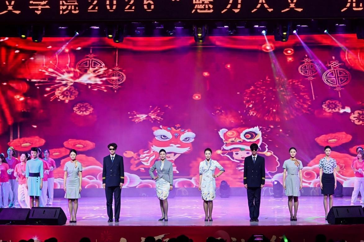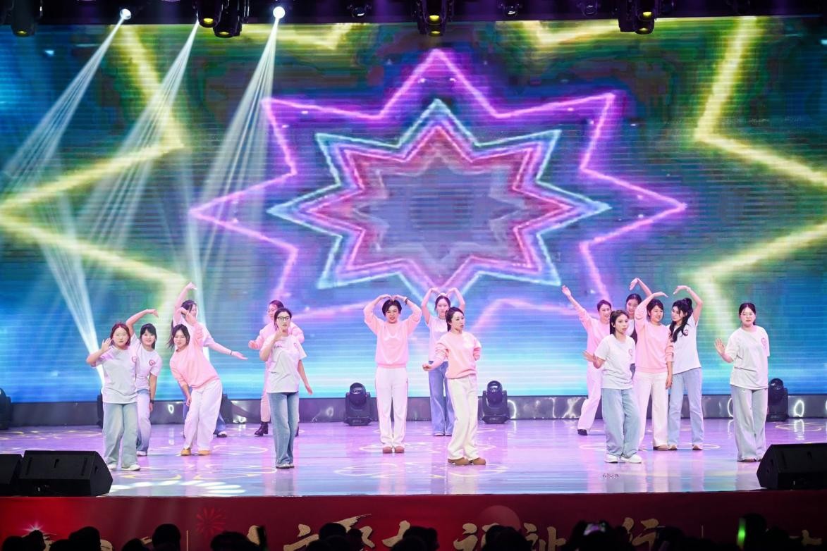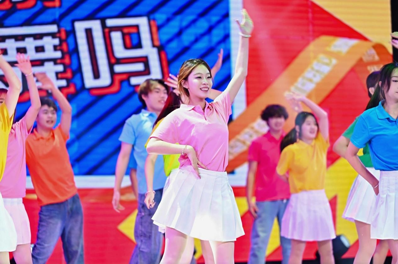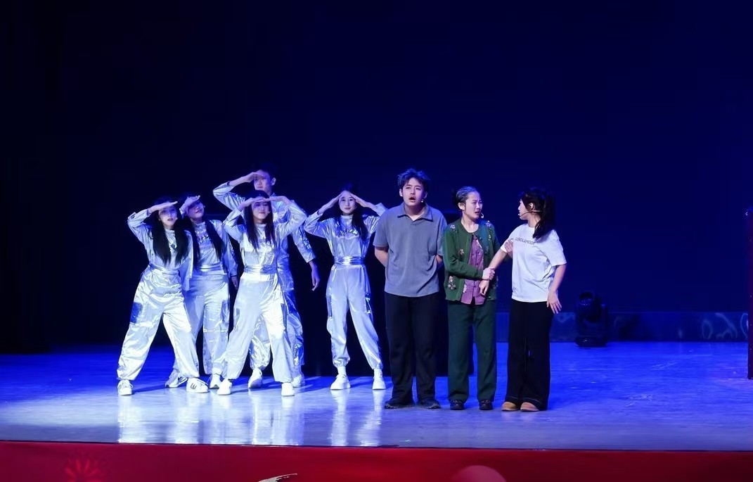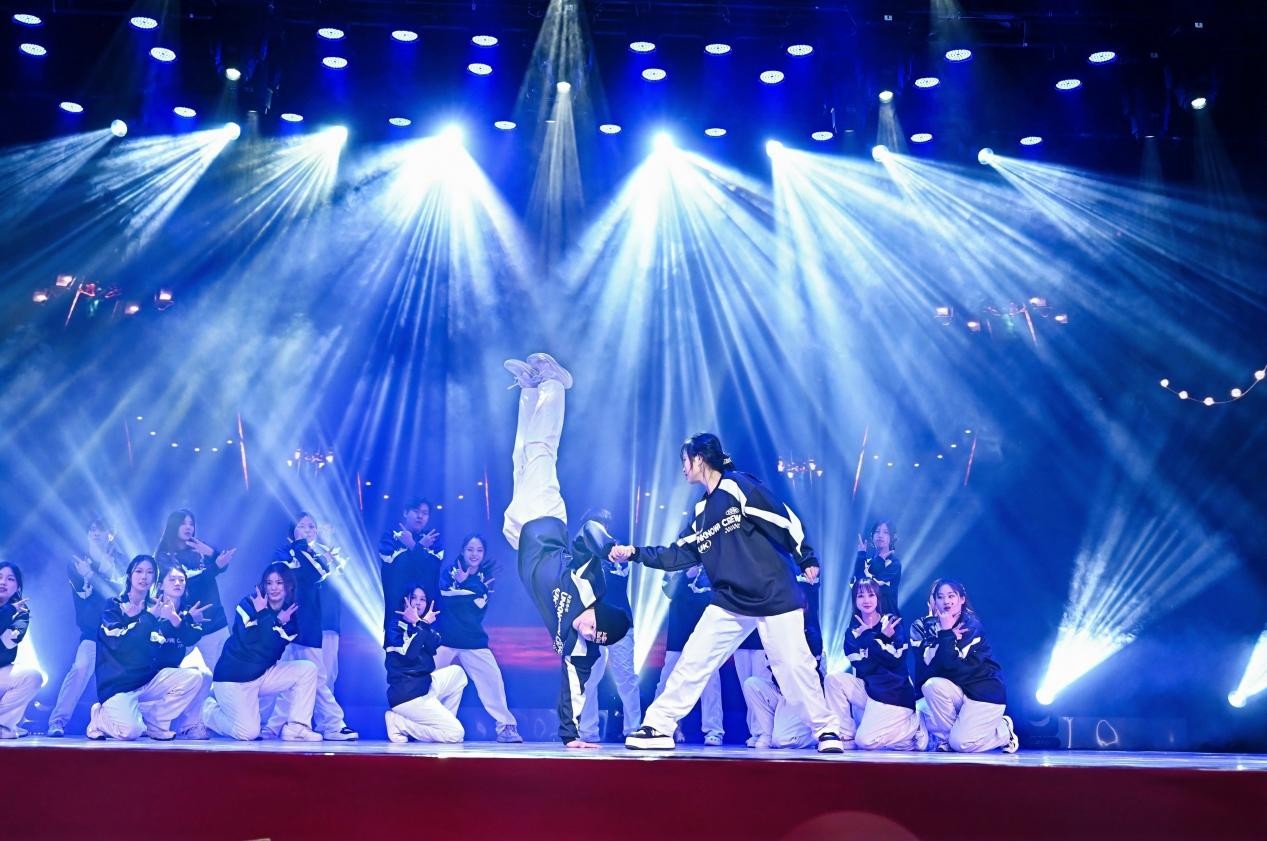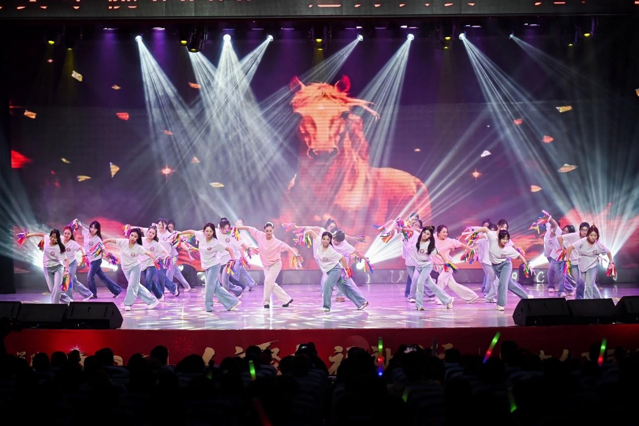 第二篇章“青春・逐梦”聚焦青年学生成长,彰显青春担当。商学院学生带来的舞蹈《舞耀青春》,以活力四射的舞姿诠释青春的热烈奔放与蓬勃朝气;社会福祉学院师生的合唱《不要慌,太阳下山有月光》用温柔治愈的旋律,抚慰着追梦路上的迷茫与忐忑,传递出从容前行的温暖力量;国际学院学生表演的歌舞《Try Everything》将在场观众带入了一个充满梦幻色彩的动画世界,用歌声和舞蹈传递着逐梦路上敢闯敢试的青春信念。法学院师生带来情景剧《有我》,以真挚饱满的情感,传递出“有我”二字背后青年法律人以法之名守护公平正义的坚定承诺。学校街舞社团用舞蹈《Unknown Crew》点燃全场,以节奏感十足的舞步、充满张力的表现,将青年对生活的热忱与对梦想的执着尽情释放,为晚会献上了最火爆的贺礼。