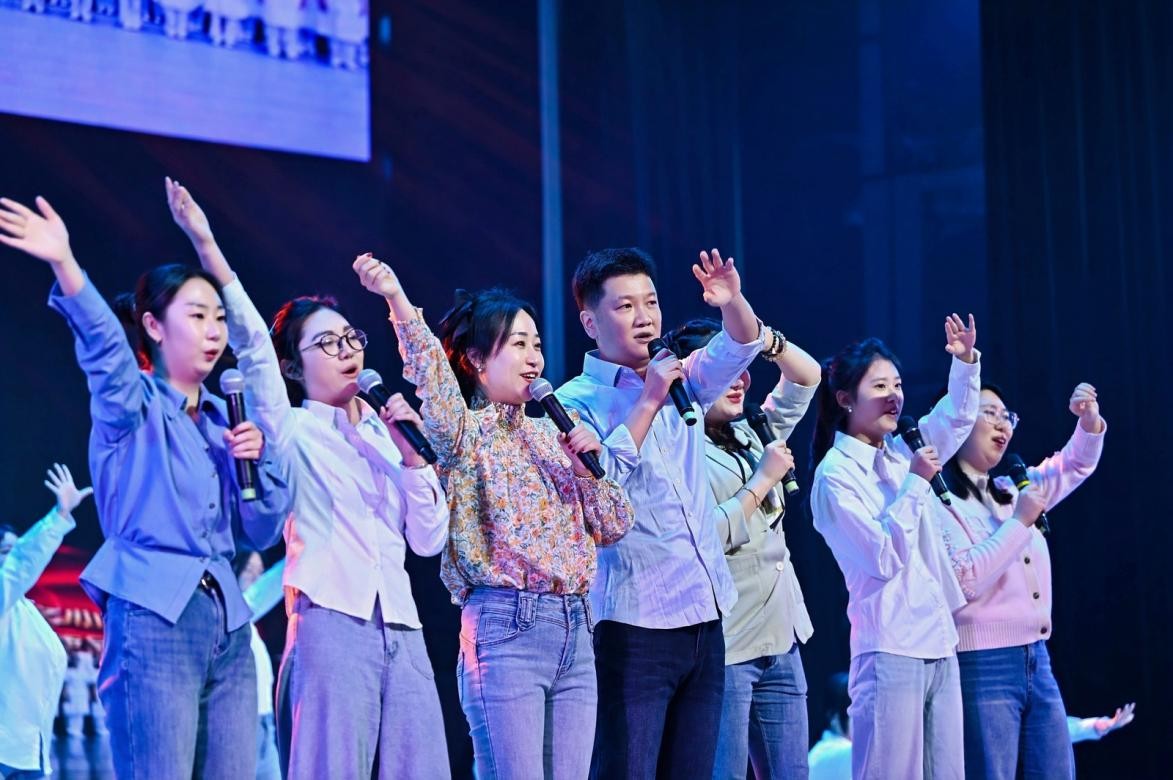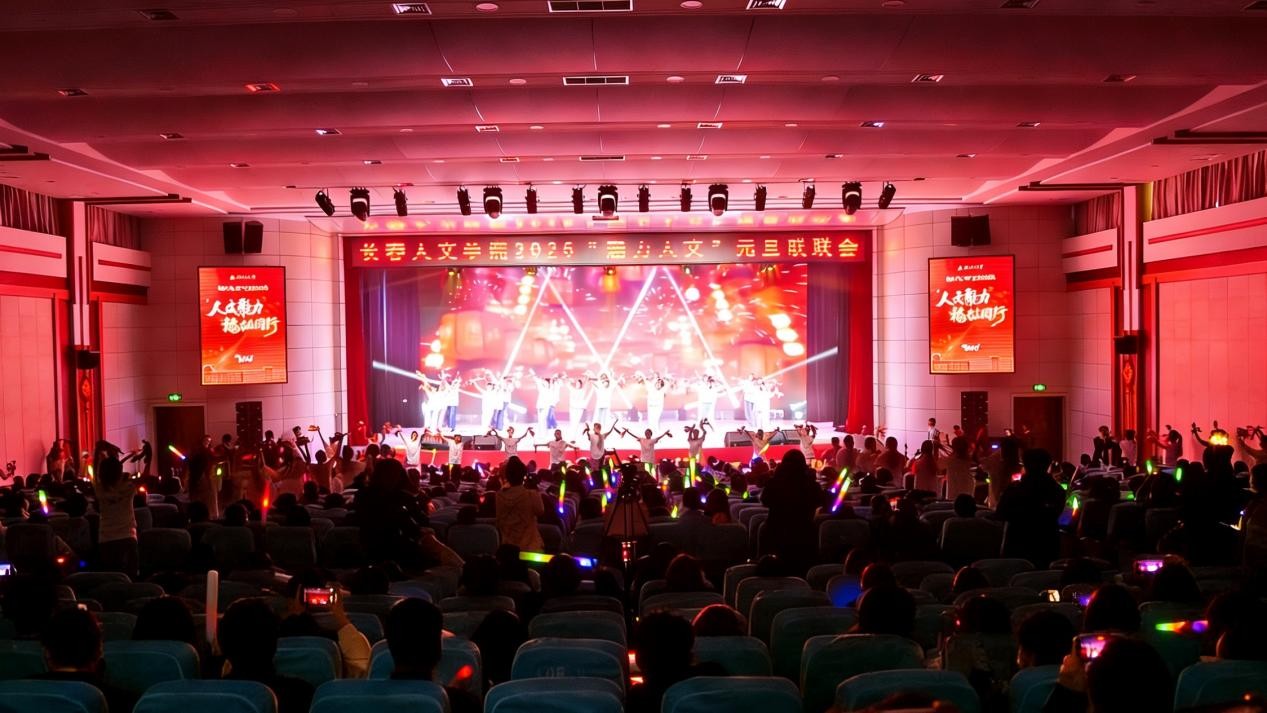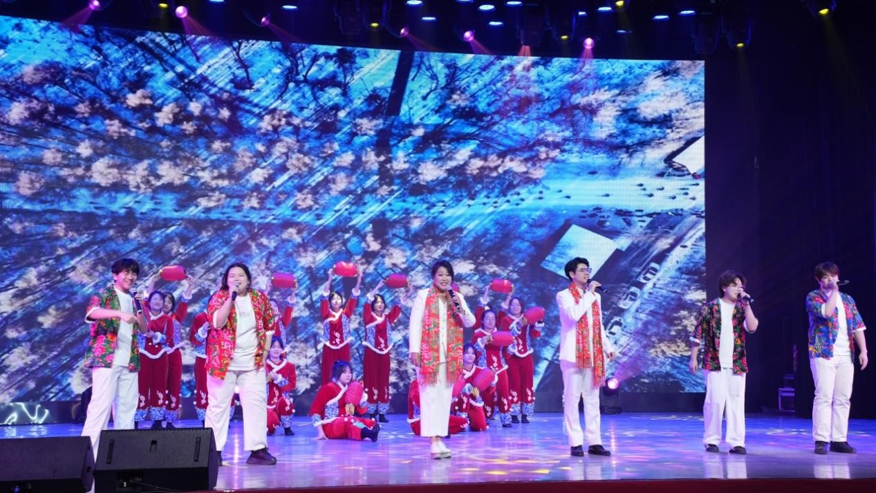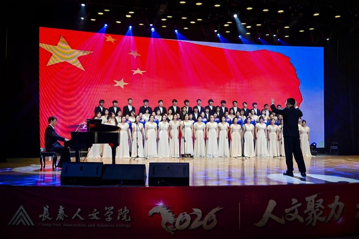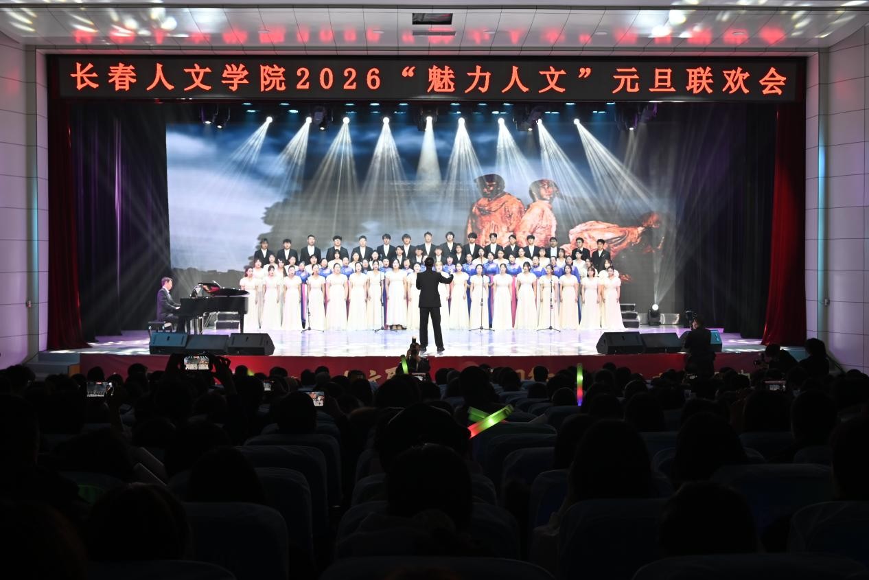 联欢会在教师合唱团、音乐舞蹈学院人文福祉合唱团深情演唱的《松花江上》《向往》中拉开序幕,悠扬的旋律交织着赤诚情怀,带领大家回望峥嵘往昔的坚韧岁月,传递了对未来的无限憧憬。