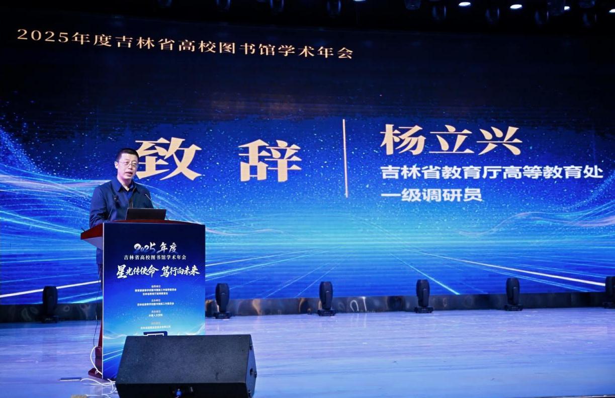 1月5日下午,由教育部高等学校图书情报工作指导委员会和吉林省教育厅高教处指导、吉林省高等学校图书情报工作委员会主办、吉林省超星信息技术有限公司协办,我校承办的2025年度吉林省高校图书馆学术年会在图书馆报告厅举行。教育部高等学校图书情报工作指导委员会秘书长陈凌、吉林省教育厅高等教育处一级调研员杨立兴等领导,校长张兴海、党委书记柳轶、副校长陈彬出席年会。来自全省高校图书馆的馆长、省内外专家及业务骨干300余人齐聚一堂,围绕“星光传使命,笃行向未来”这一主题,共谋新时代高校高质量发展新路径。