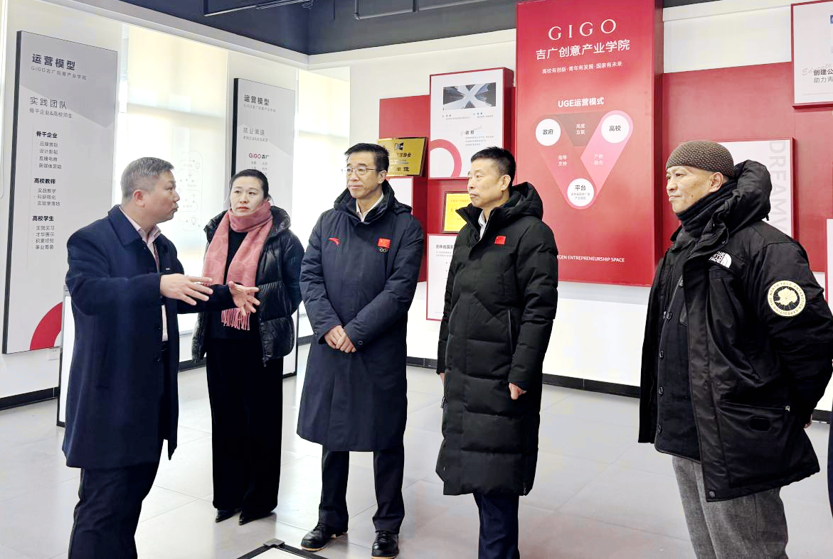调研团队先后走访了美术与设计学院学生项目化教学实践基地、传媒学院实习实训场所等核心区域,实地察看学生岗位实践、项目实操情况,详细了解校企合作项目的运行模式、课程对接及成果转化进展。交流中,张兴海校长对美术与设计学院、传媒学院深耕项目化教学改革、搭建高质量实习实践平台的成效给予充分肯定,对吉广集团整合行业优质资源、提供全真实践场景、赋能学生成长成才的举措表示高度赞赏,认为双方前期合作已构建起“校企协同、优势互补”的良好生态。
