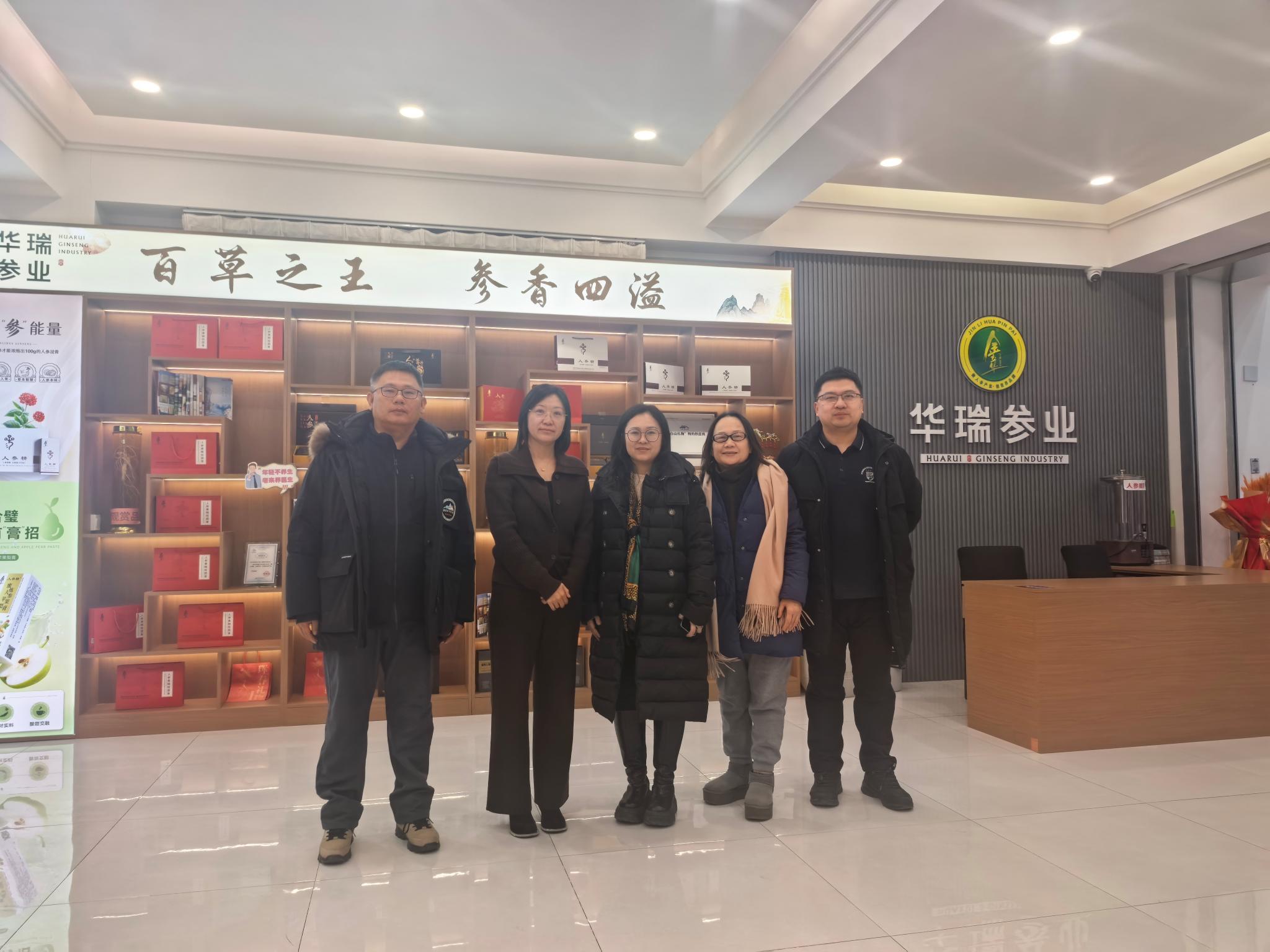 调研首站为珲春华瑞参业生物工程股份有限公司。公司副总经理姜雯雯热情接待调研组,并陪同参观人参产品展厅与生产车间。作为集人参种植、研发、生产、销售于一体的综合性实体企业,华瑞参业凭借“生态化种植+标准化生产+国际化营销”模式,打造近200款人参系列产品,远销全球多个国家和地区。座谈会上,双方围绕人参产品电商运营痛点展开深入探讨,企业方提出在库存周转、流量精准投放等方面的优化需求,这与《电子商务企业精益运营管理实训》课程的核心培养目标高度契合。