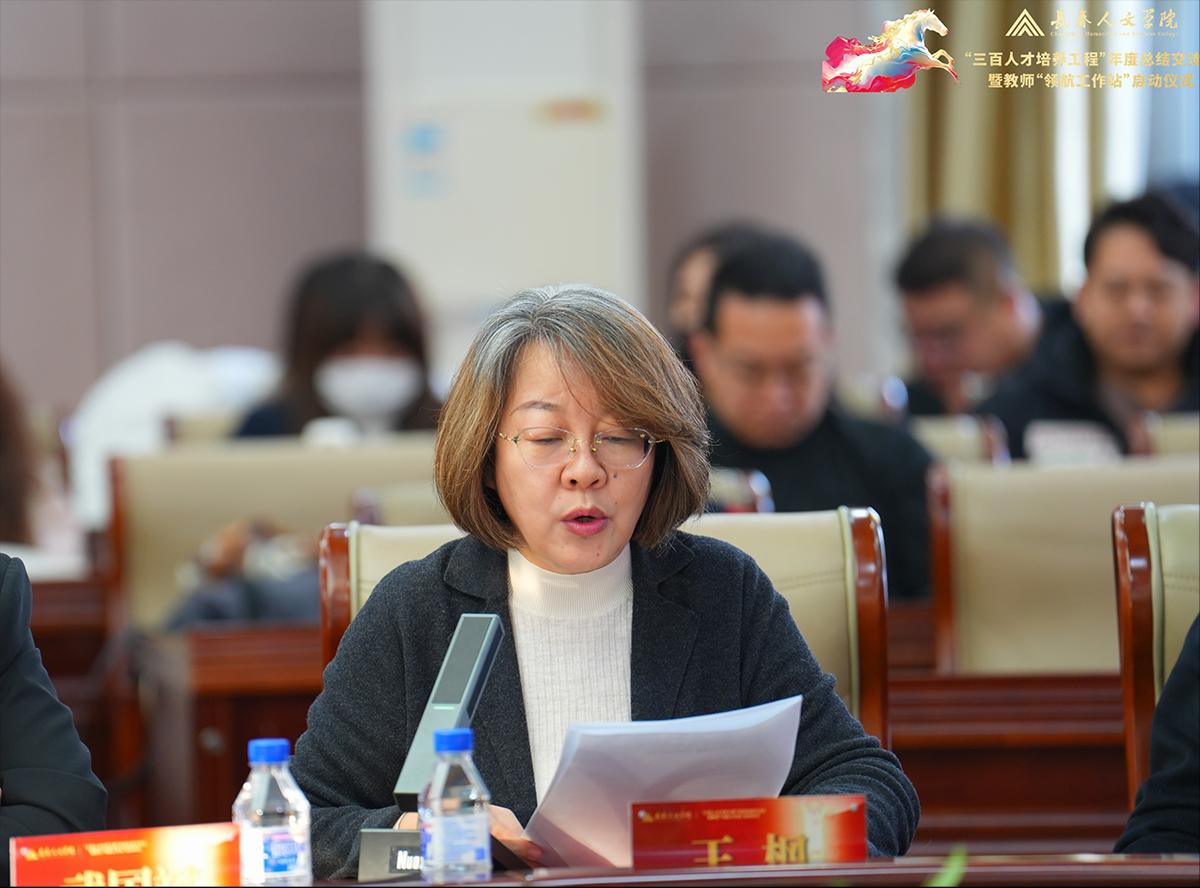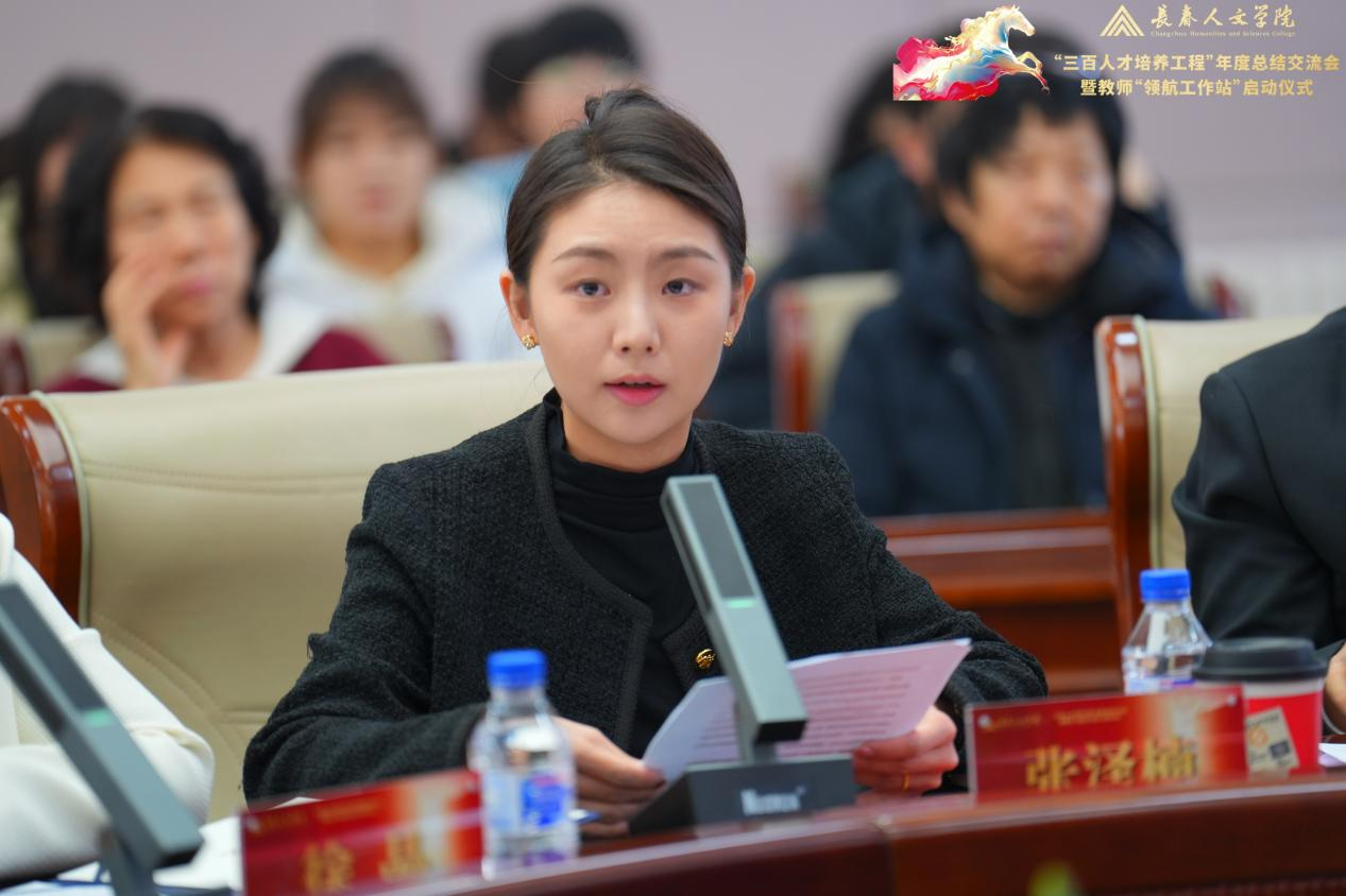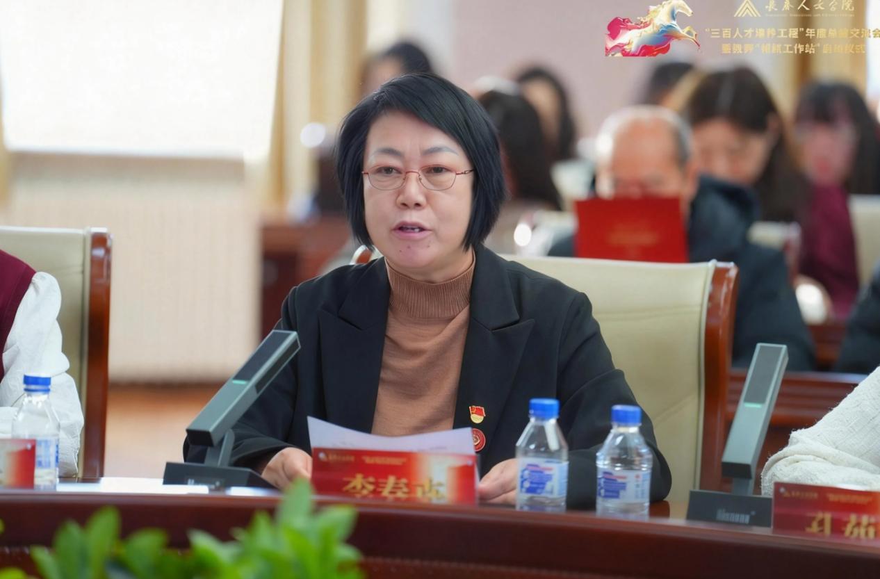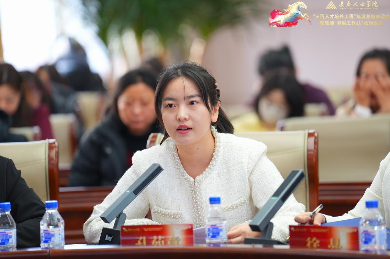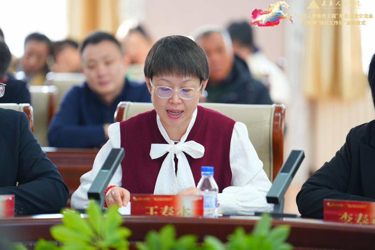 在分享交流环节,七位代表依次发言。“三百人才培养工程”负责人代表、教务处处长王枫系统汇报了“人文青椒”工程的实践与思考;科研骨干成员代表、音乐舞蹈学院教师武国斌结合自身成长经历,分享了以科研为引擎开拓音乐福祉新路径的探索;人文青椒成员代表、法学院教师张泽楠讲述了在工程平台滋养下的教学成长历程;青年教师发展协会成员代表、社会福祉学院教师徐晶以“以福祉为光,共赴教育之约”为主题,深情分享了协会所蕴含的温暖力量;成员代表、马克思主义学院教师孔茹意结合自身在工程中的成长体验,阐述了对立德树人根本任务的深刻理解。支持学院代表、护理福祉学院院长兼党总支书记李春卉汇报了学院以“三驾马车”协同推进工程落地的实践情况;计算机学院党总支书记王春杰介绍了学院以党建引领工程实施的系统举措。