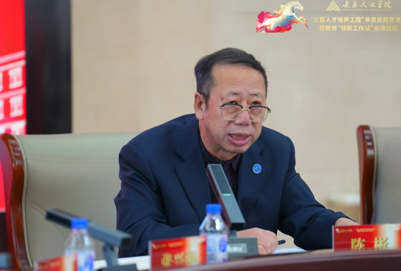 1月26日上午,学校“三百人才培养工程”年度总结交流会暨教师“领航工作站”启动仪式在东区行政教学楼501会议室举行。校长张兴海、党委书记柳轶、副校长陈彬、副校长刘涛、党委副书记李曼出席会议。相关部门负责人、二级学院(部)党政负责人、“三百人才培养工程”成员代表共同参会。会议由副校长陈彬主持。